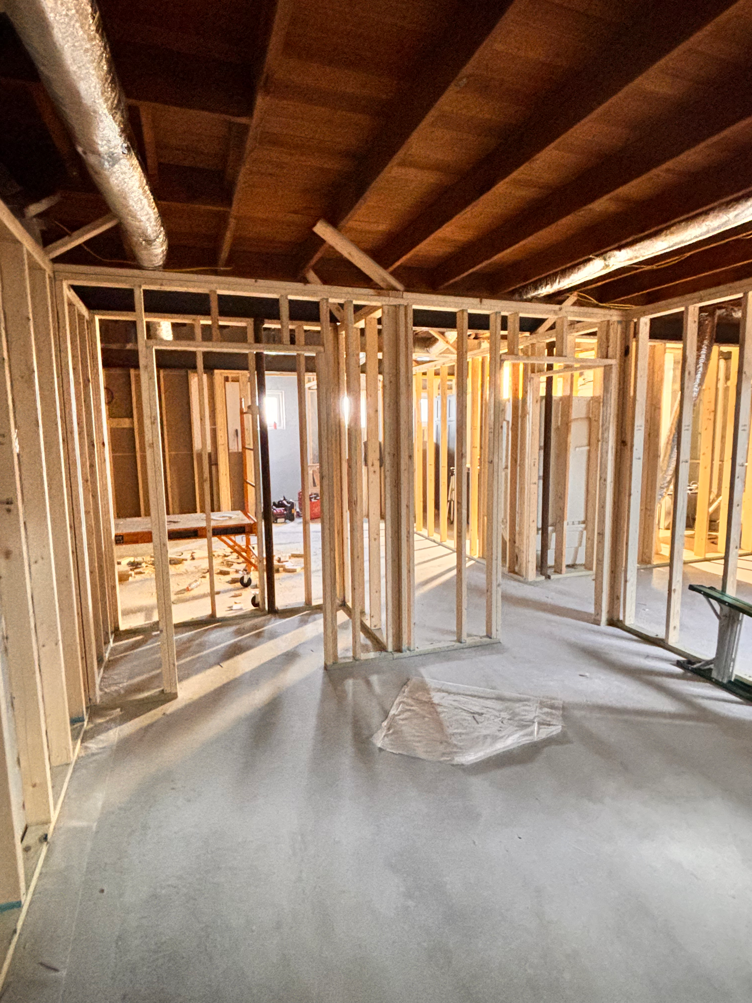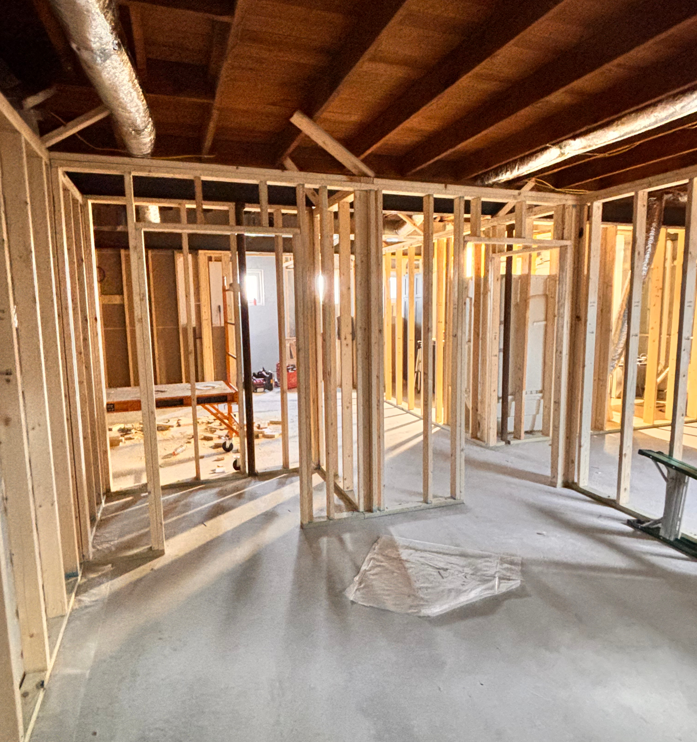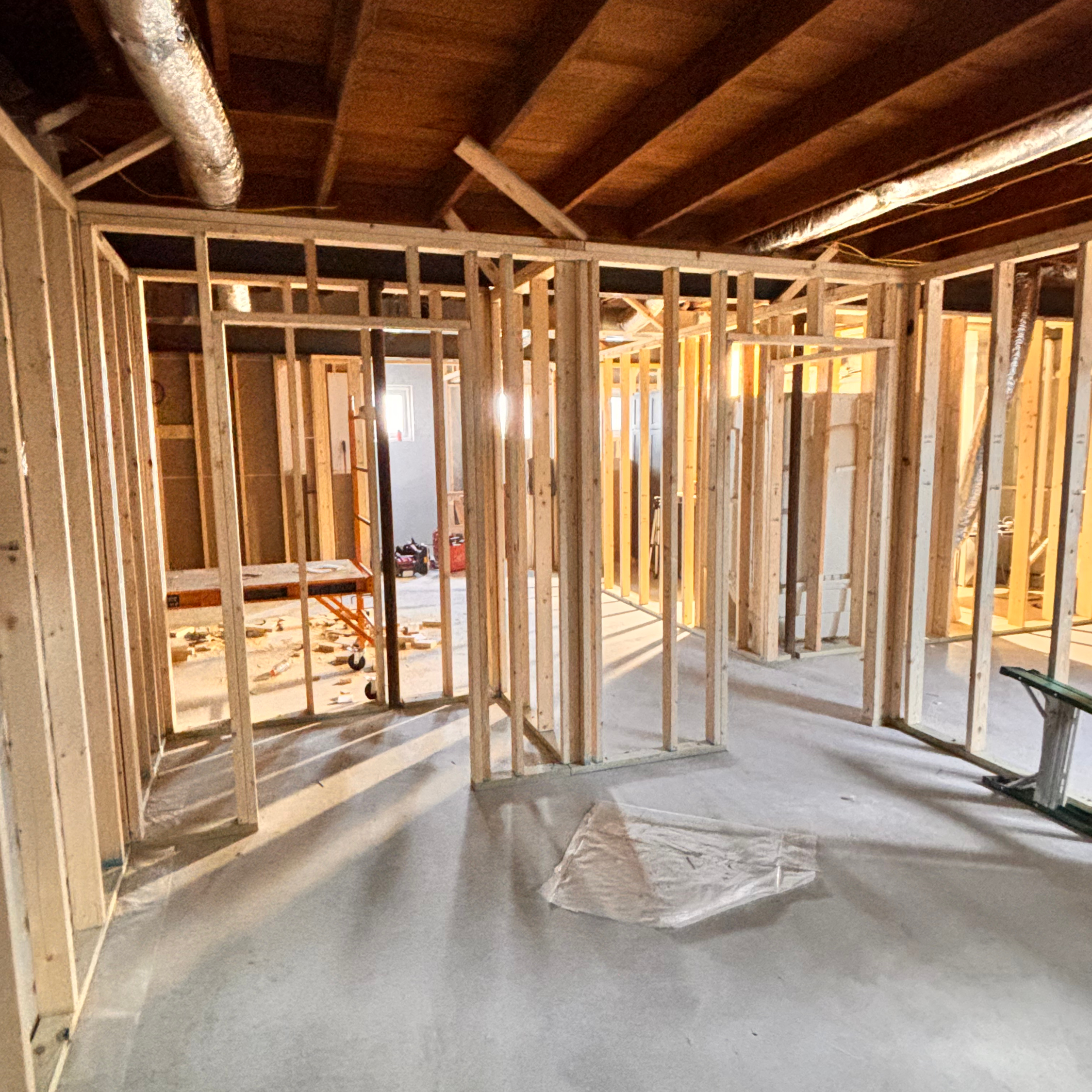 We begin by listening closely: walk the space with you, understand your goals (better traffic flow between rooms? turning a raw basement into a family hangout or guest suite? adding an office or bedroom?), review any existing plans or hurdles, and map out a clear path forward. Then we handle the precise, code-compliant framing, straight studs, solid headers, proper openings for doors/windows, and smart layouts that make the rest of the build (insulation, drywall, etc.) easier and cleaner.